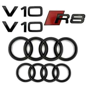 Audi R8 Rings Emblem Gloss Black Side V10 Logo Badge Set 5PC 2008-2015