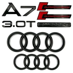 Audi A7 Front Rear Rings Emblem Gloss Black Supercharger 3.0T Badge Set 2012-2018