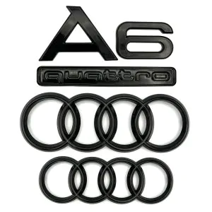 Audi A6 Front Rear Rings Emblem Gloss Black Trunk Logo Quattro Badge Set 4PC 2012-2019