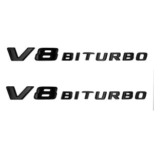 V8 BiTurbo Emblem Side Fender 3D Badge Mercedes Benz AMG 17+ Gloss Black C63 E63
