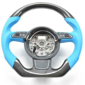 Carbon Fiber Racing Car Steering Wheel Blue Perforated Leather for Audi A3