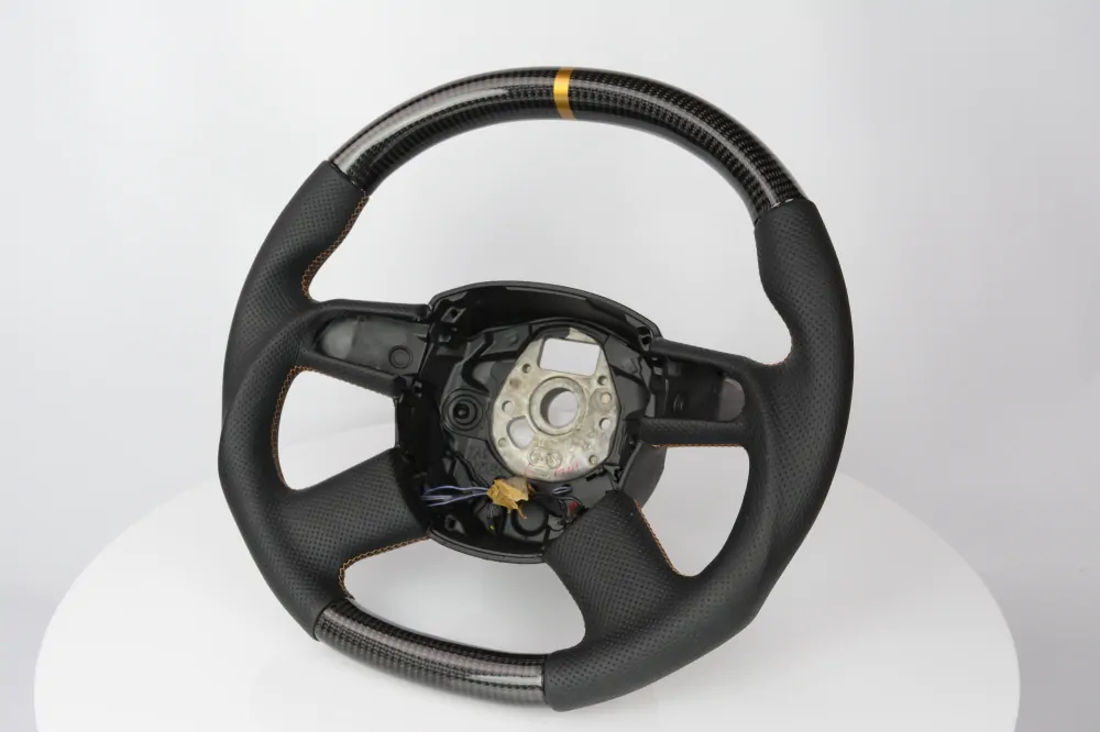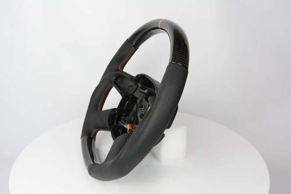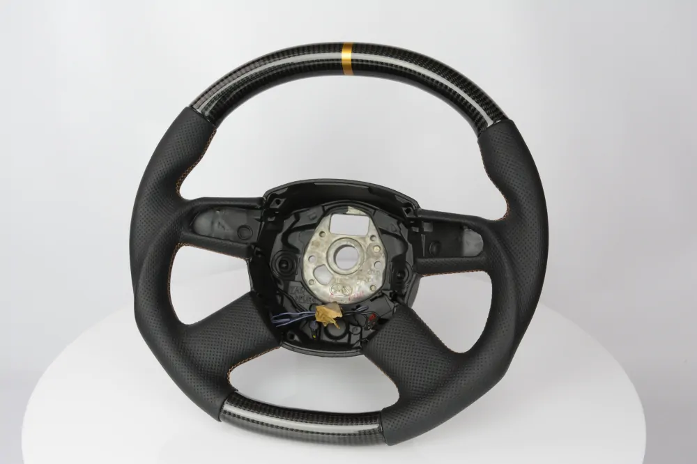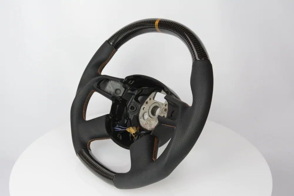 Elegant steering wheel will be a unique addition to the interior of your car! Convenient anatomy, soft original skin in combination with a polyurethane backing will cause only pleasant driving sensations! Unique anatomy (Made on polyurethane, not putty). Changed geometry. Carbon inserts in design.Authentic. Refurbished. Airbag is not included.