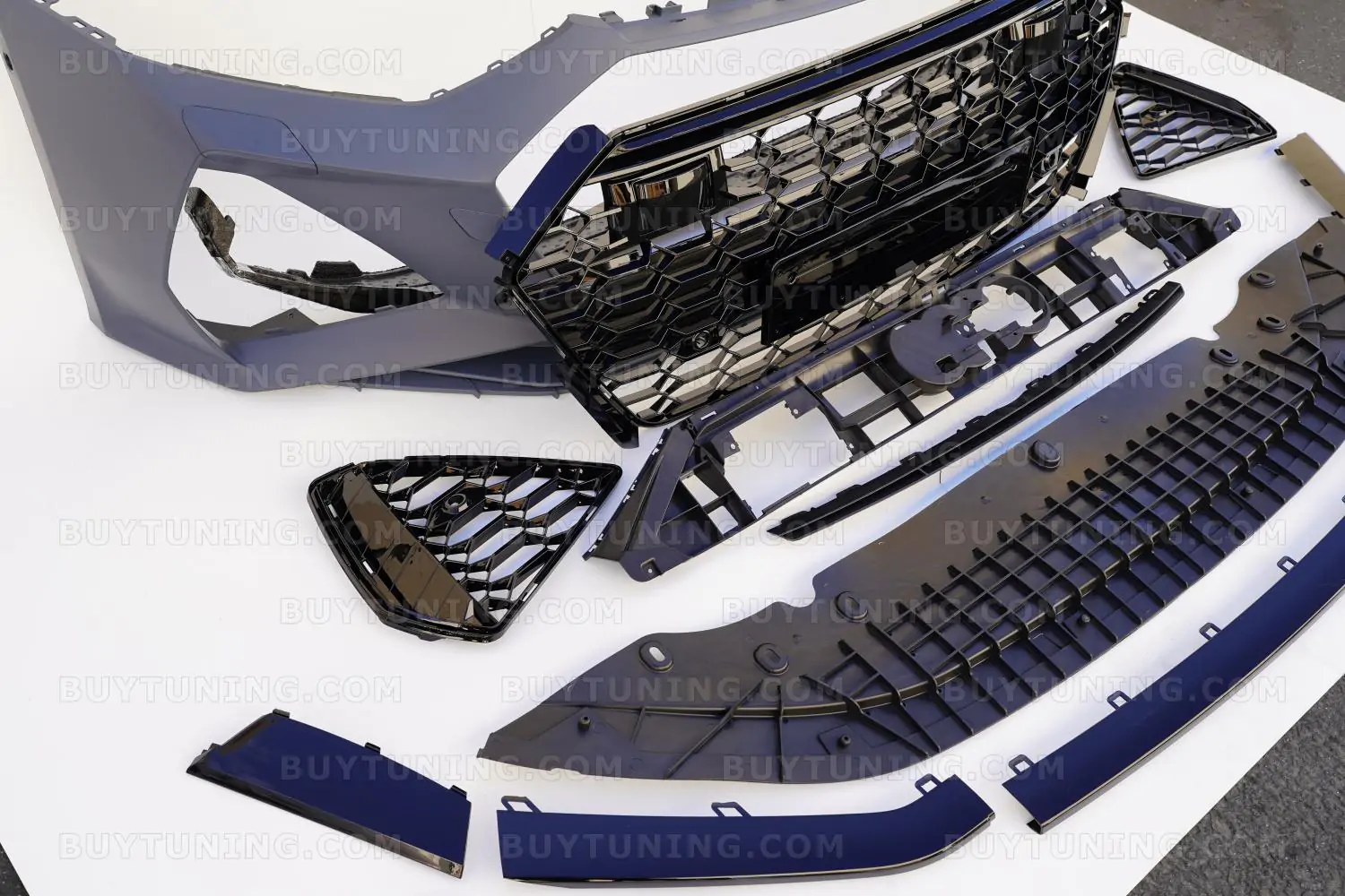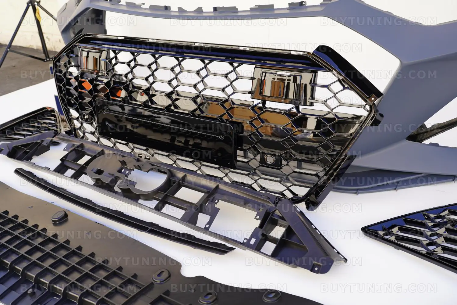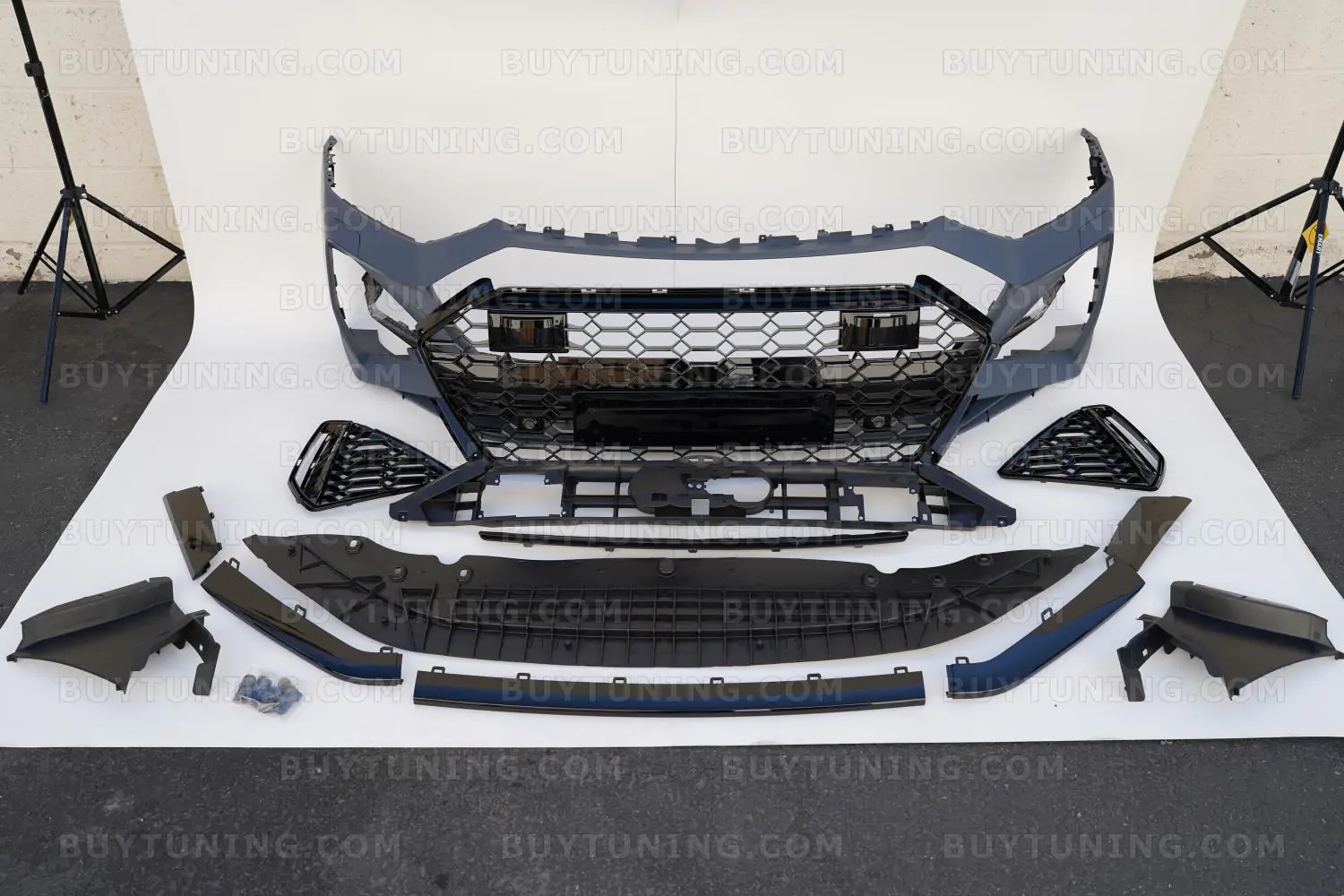 The perfect facelift for your Audi RS7, this front bumper set comes with a Honeycomb Grille and is manufactured using high-grade ABS Plastic. The bumper is made by using precision molds to ensure a perfect fit for Audi RS7, A7, , and S7 models. Whether your stock bumper is damaged or you need something that is more robust than the factory-fit, this front bumper set is just what you need. The polished and powder-coated finish on the Honeycomb Grille also adds an aggressive look to your car’s front, while adding functional abilities like better debris protection and smoother airflow to the engine.