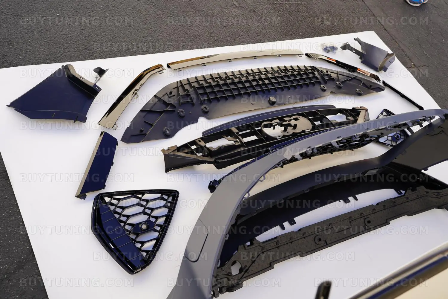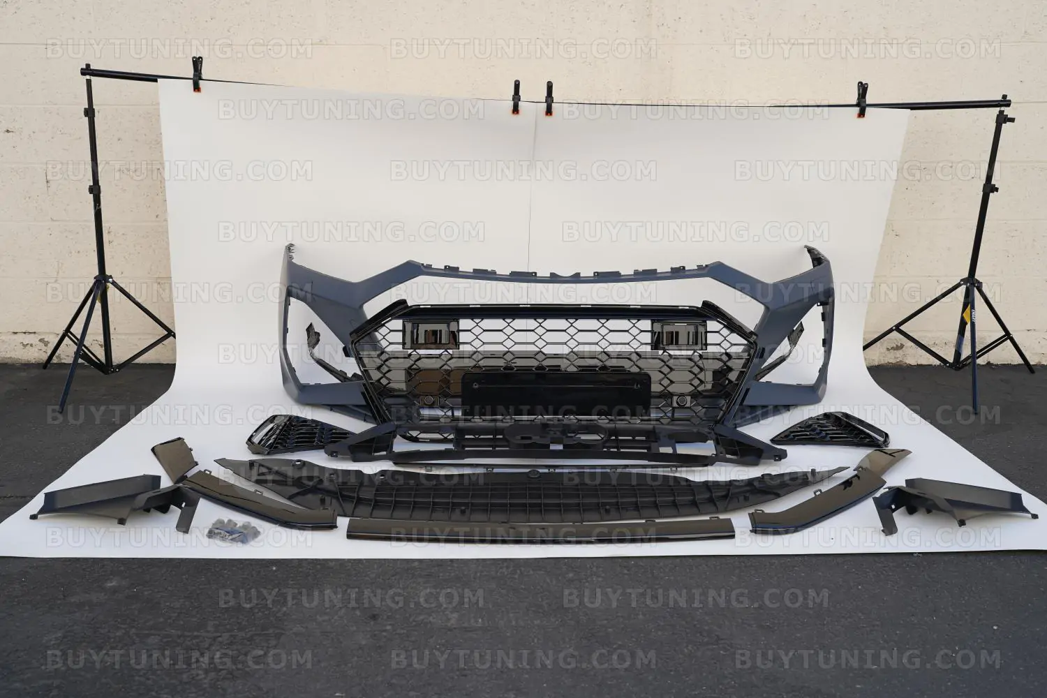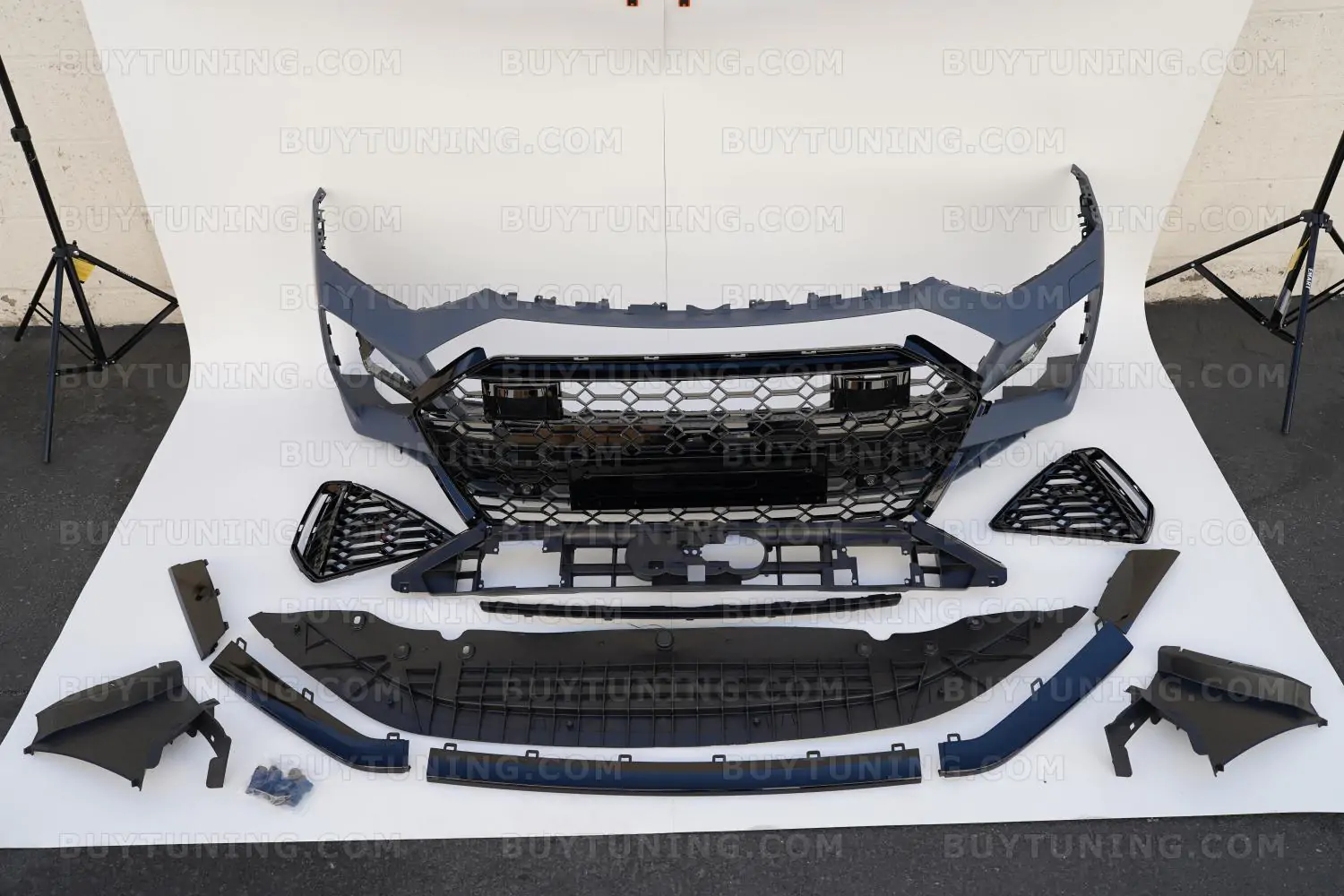 The perfect facelift for your Audi RS7, this front bumper set comes with a Honeycomb Grille and is manufactured using high-grade ABS Plastic. The bumper is made by using precision molds to ensure a perfect fit for Audi RS7, A7, , and S7 models. Whether your stock bumper is damaged or you need something that is more robust than the factory-fit, this front bumper set is just what you need. The polished and powder-coated finish on the Honeycomb Grille also adds an aggressive look to your car’s front, while adding functional abilities like better debris protection and smoother airflow to the engine.