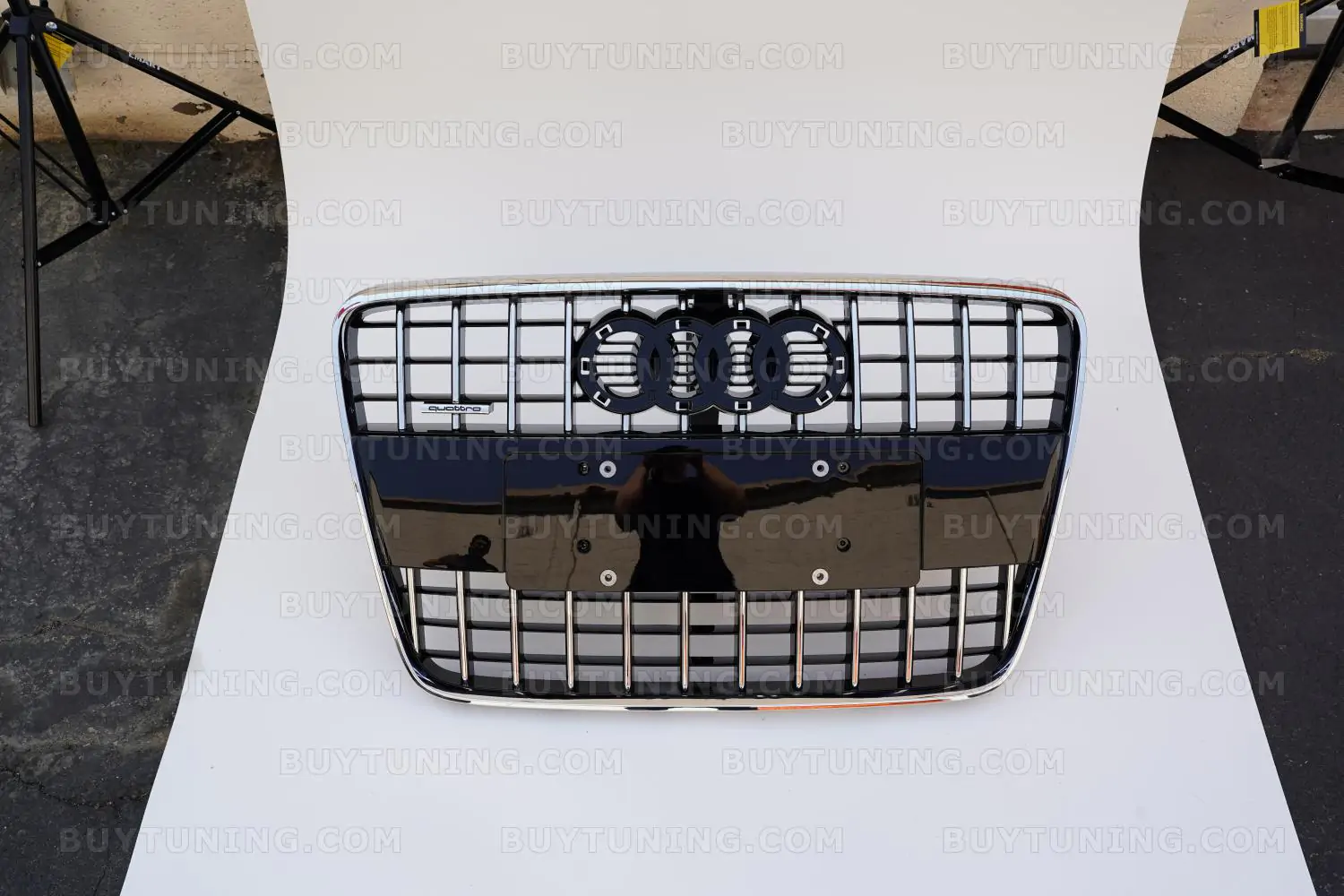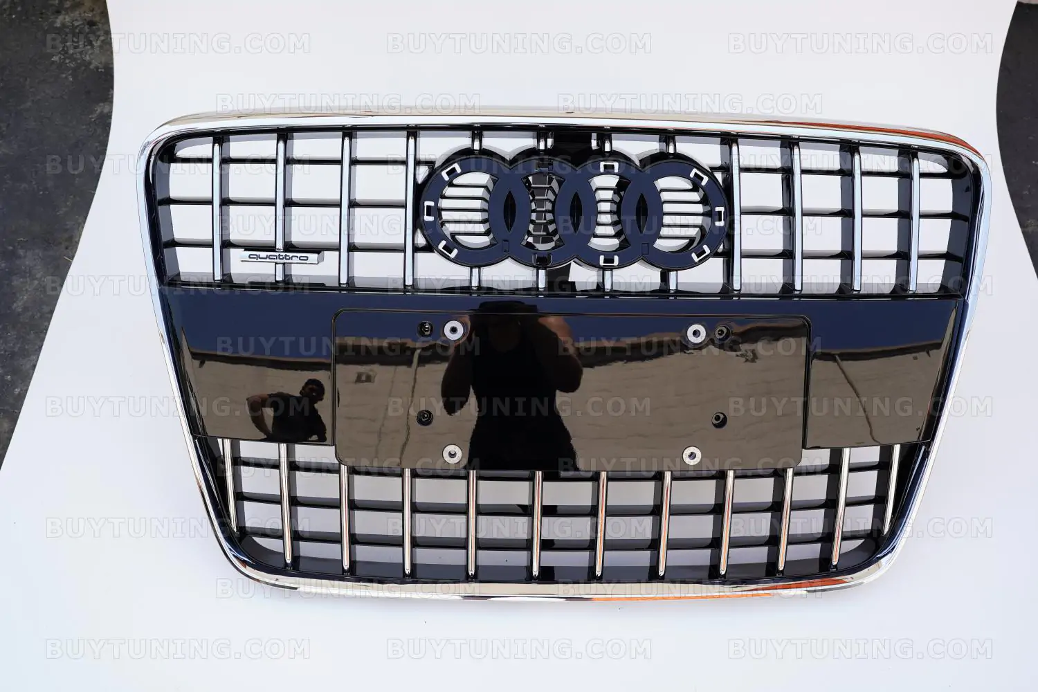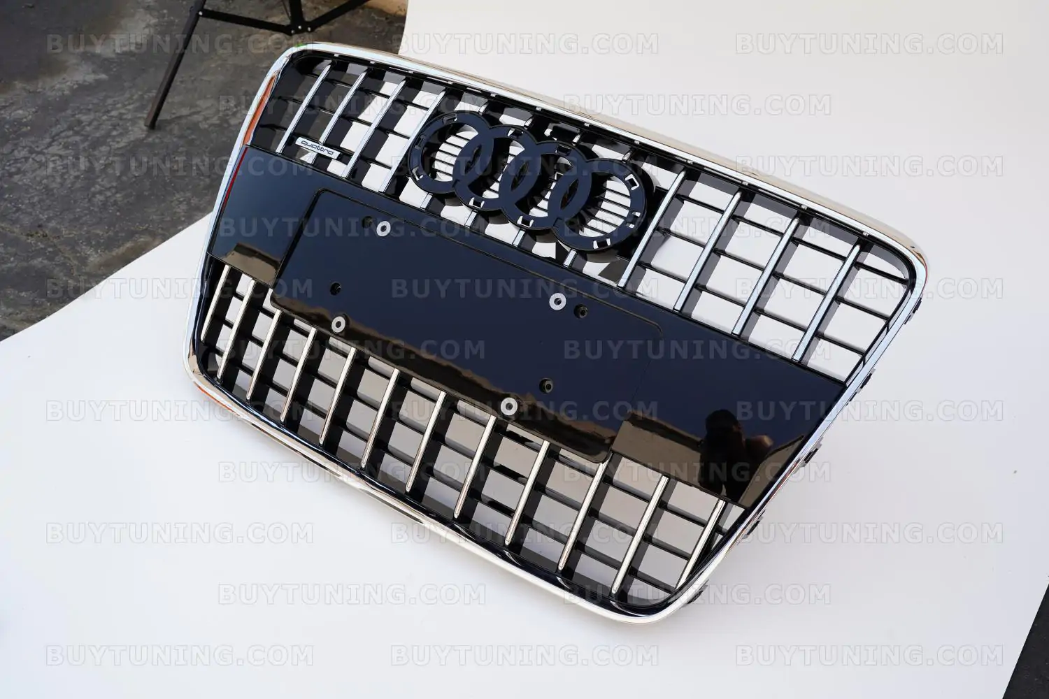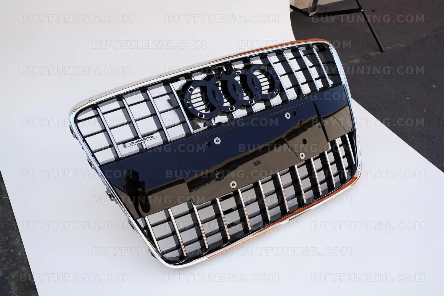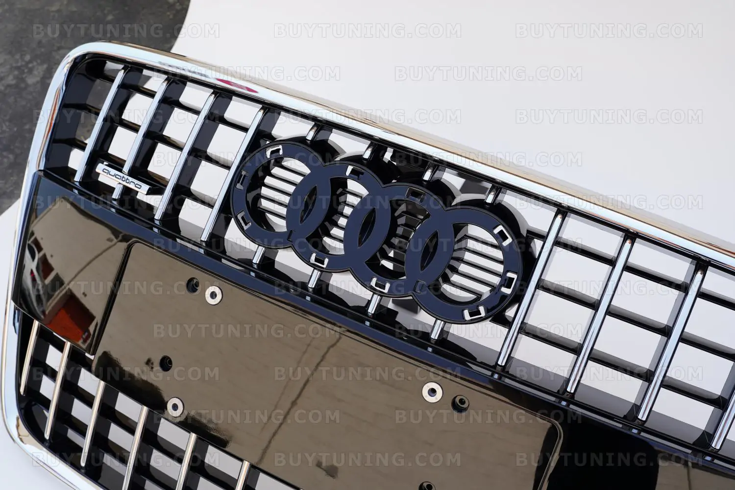 The grille comes with an emblem and Audi Rings.