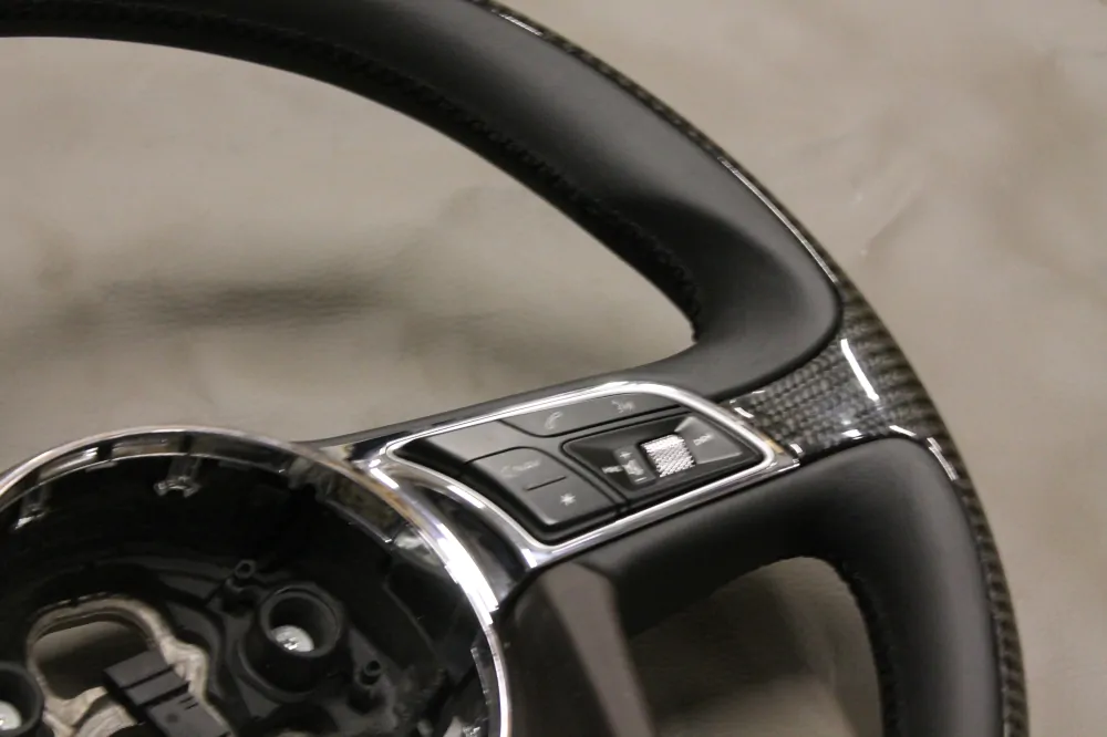 Elegant steering wheel will be a unique addition to the interior of your car! Convenient anatomy, soft original skin in combination with a polyurethane backing will cause only pleasant driving sensations! Unique anatomy (Made on polyurethane, not putty). Changed geometry. Carbon inserts in design.Authentic. Refurbished. Airbag is not included.