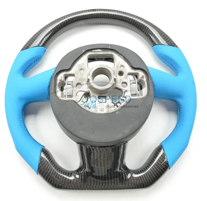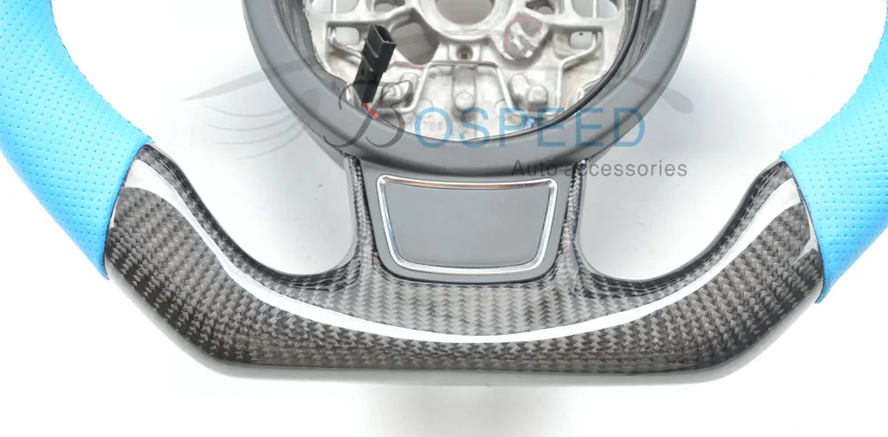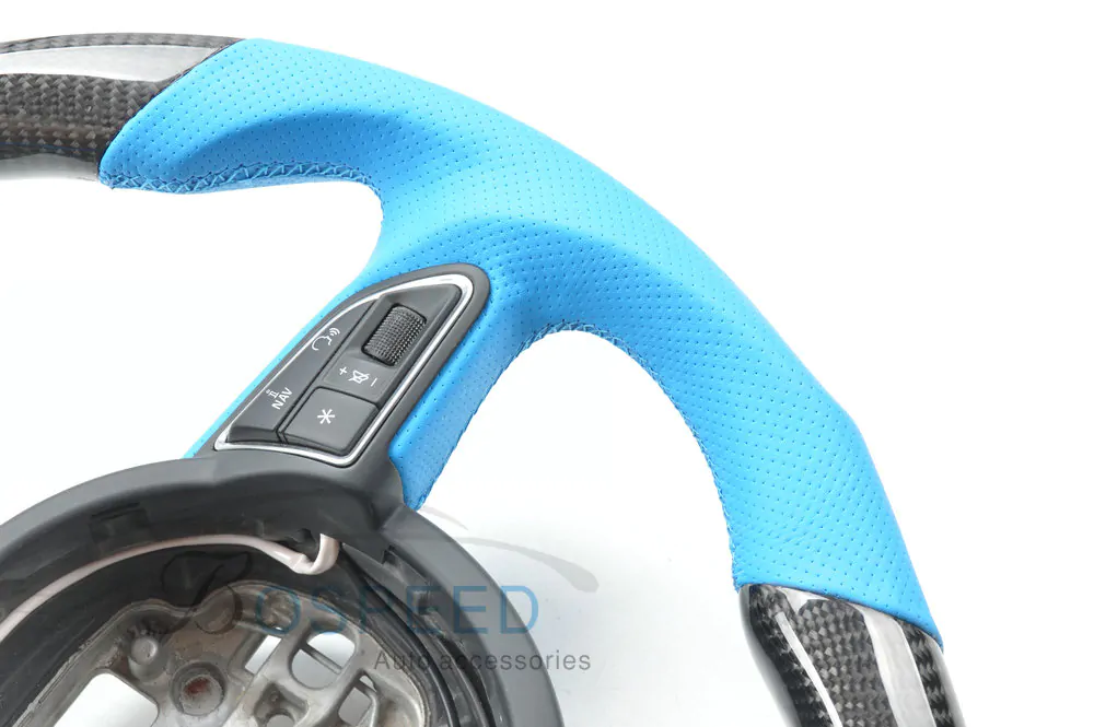 Carbon Fiber Racing Car Steering Wheel Blue Perforated Leather for Audi A3