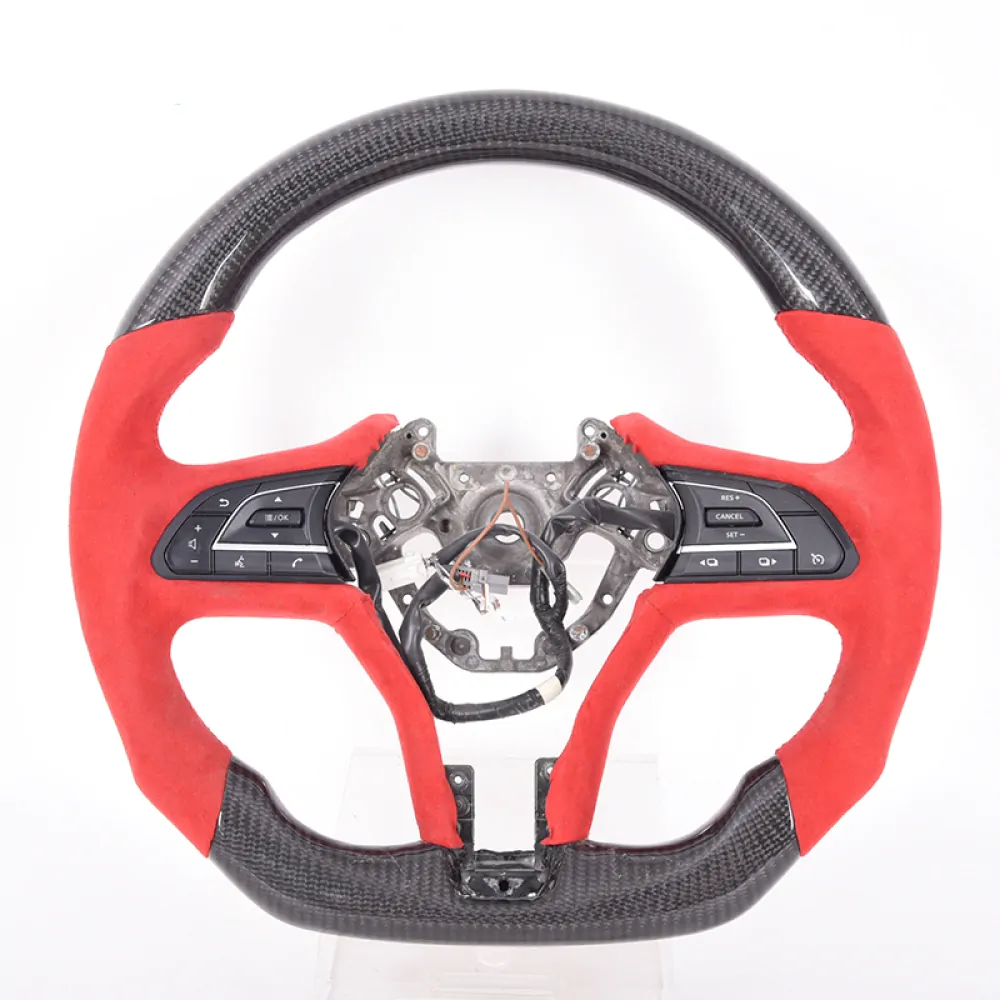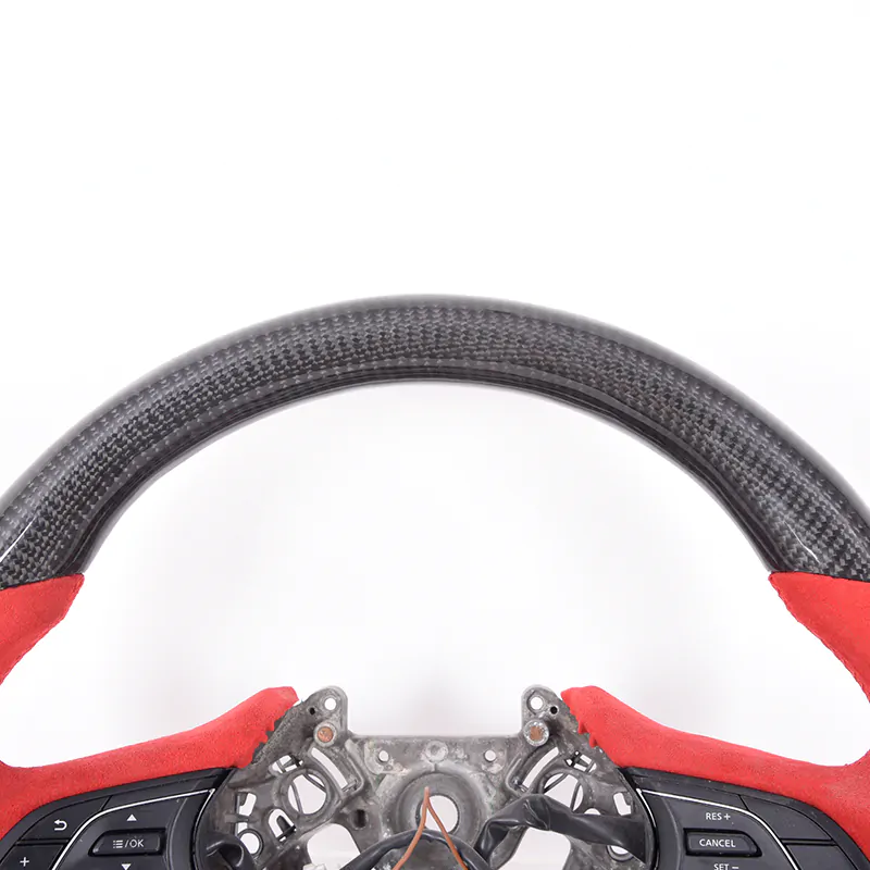 Carbon Fiber Steering Wheel With Red Suede Leather for Infiniti G37, G25