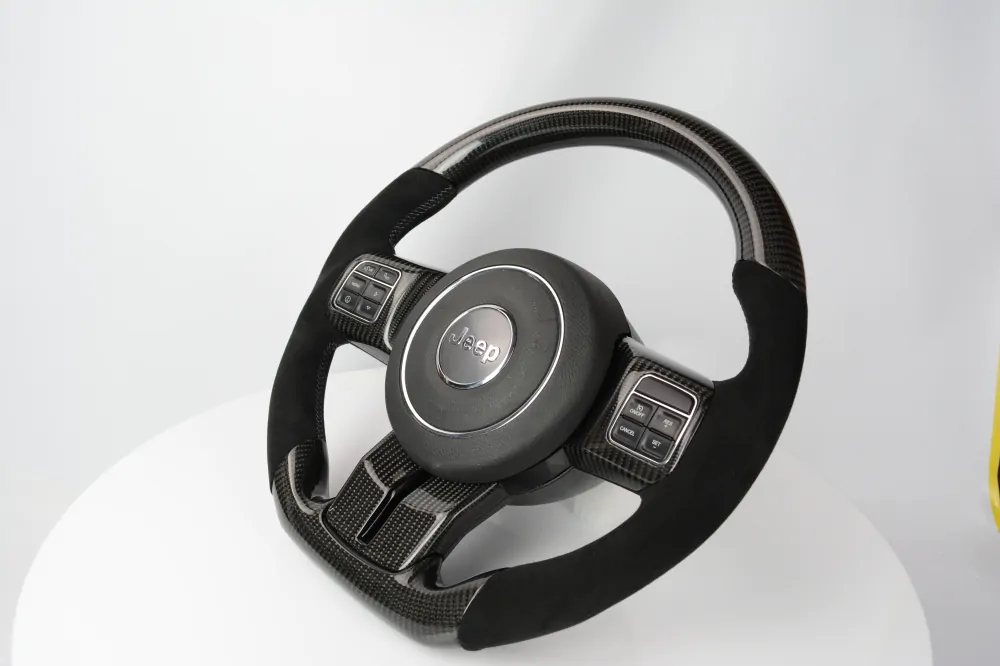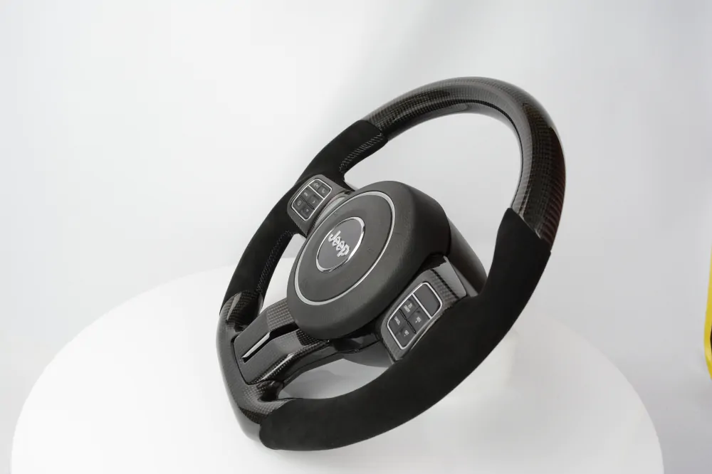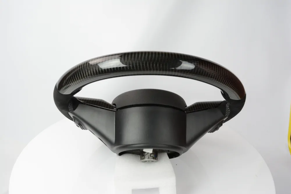 Elegant steering wheel will be a unique addition to the interior of your car! Convenient anatomy, soft original skin in combination with a polyurethane backing will cause only pleasant driving sensations! Unique anatomy (Made on polyurethane, not putty). Changed geometry. Carbon inserts in design.Authentic. Refurbished. Airbag is not included.