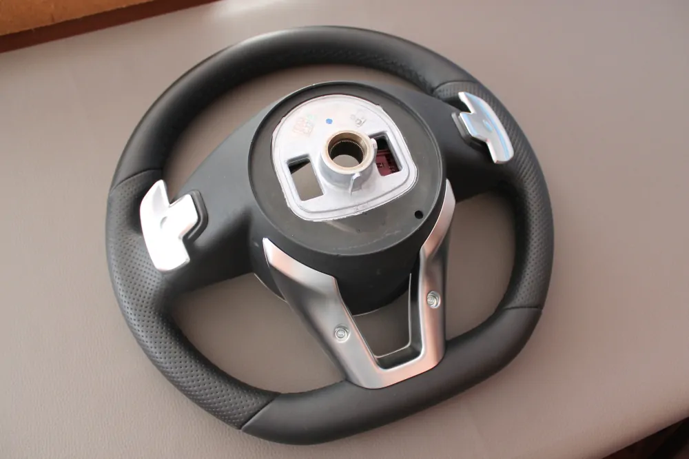 Elegant steering wheel will be a unique addition to the interior of your car! Convenient anatomy, soft original skin in combination with a polyurethane backing will cause only pleasant driving sensations! Unique anatomy (Made on polyurethane, not putty). Changed geometry. Carbon inserts in design.Authentic. Refurbished. Airbag is not included.
