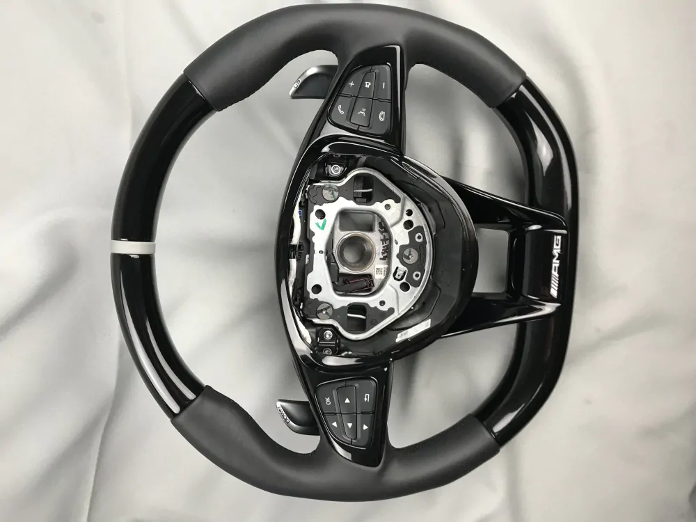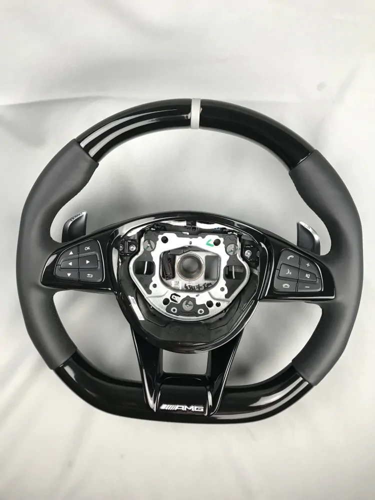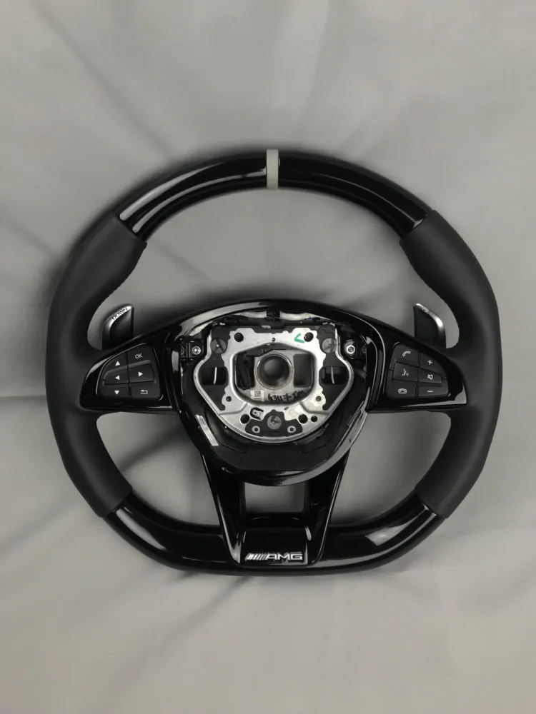 Elegant steering wheel will be a unique addition to the interior of your car! Convenient anatomy, soft original skin in combination with a polyurethane backing will cause only pleasant driving sensations! Unique anatomy (Made on polyurethane, not putty). Changed geometry. Carbon inserts in design.Authentic. Refurbished. Airbag is not included.