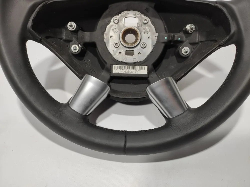 Elegant steering wheel will be a unique addition to the interior of your car! Convenient anatomy, soft original skin in combination with a Black stitching will cause only pleasant driving sensations! Unique anatomy (Made on polyurethane, not putty). Inserts made with real carbon fiber. Stock metallic silver center.Authentic. Refurbished. Airbag is not included.