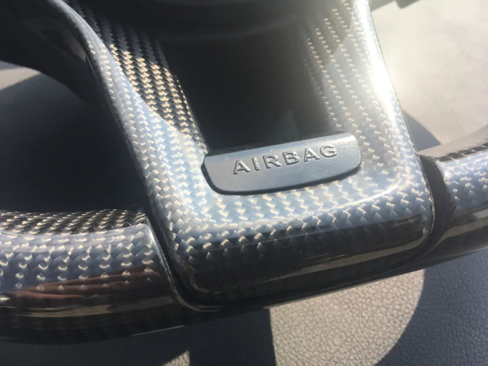 Elegant steering wheel will be a unique addition to the interior of your car! Convenient anatomy, soft original skin in combination with a polyurethane backing will cause only pleasant driving sensations! Unique anatomy (Made on polyurethane, not putty). Changed geometry. Carbon inserts in design.Authentic. Refurbished. Airbag is not included.