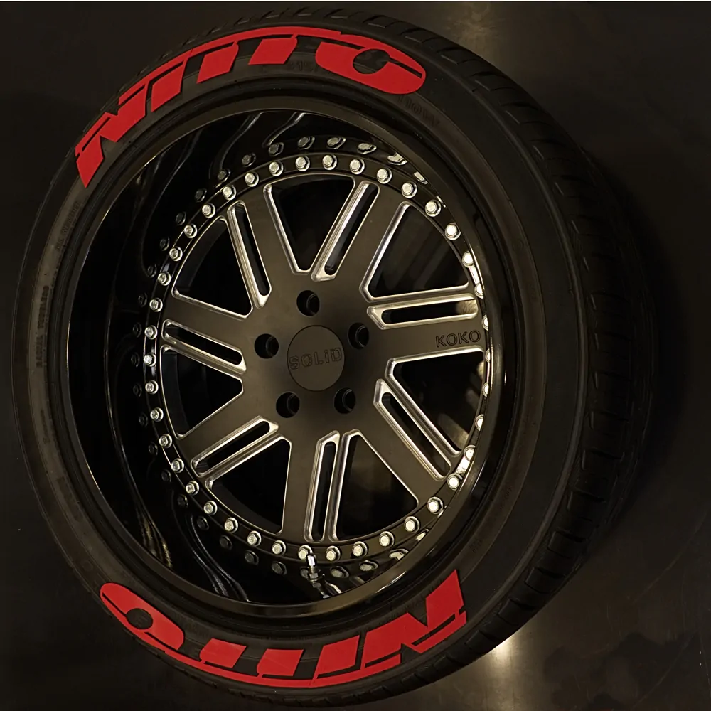 Permanent Tire Lettering Stickers Nitto Red set for 4 wheels 1.25″ for 14″ to 22″