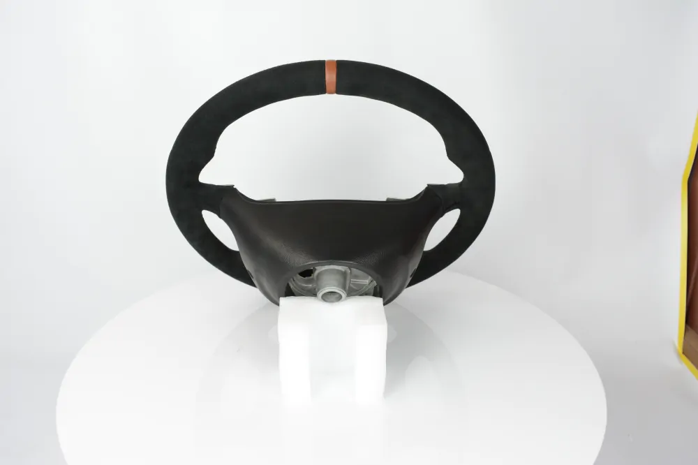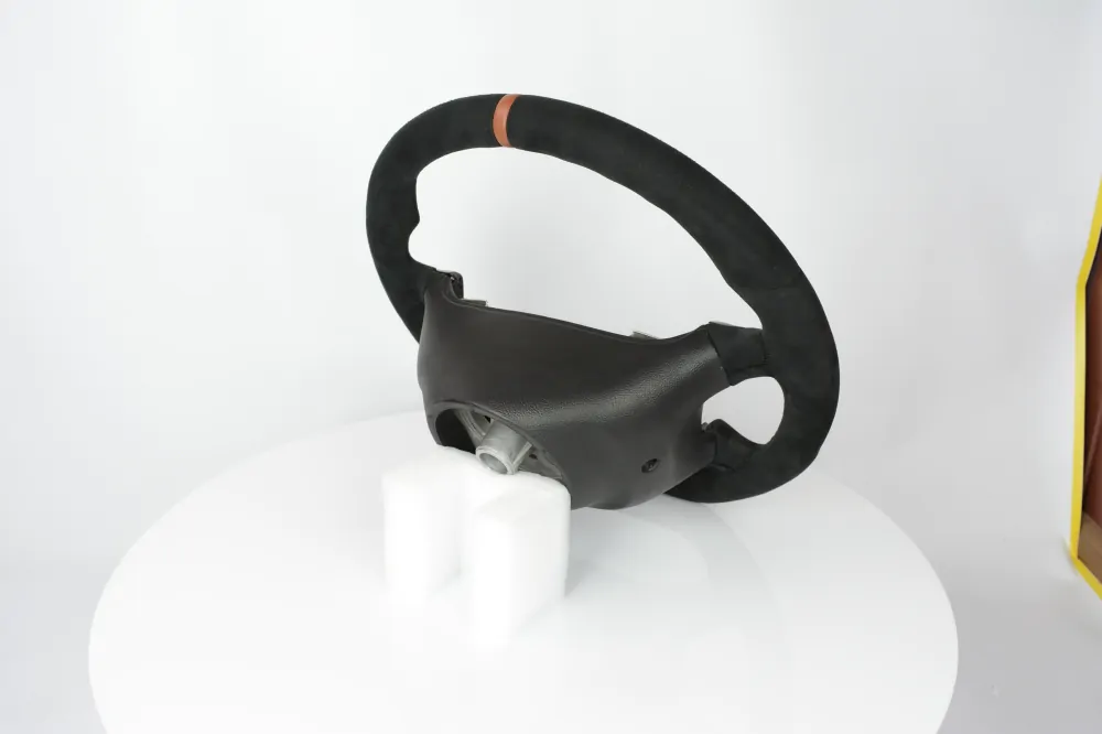 Elegant steering wheel will be a unique addition to the interior of your car! Convenient anatomy, soft original skin in combination with a polyurethane backing will cause only pleasant driving sensations! Unique anatomy (Made on polyurethane, not putty). Changed geometry. Carbon inserts in design.Authentic. Refurbished. Airbag is not included.