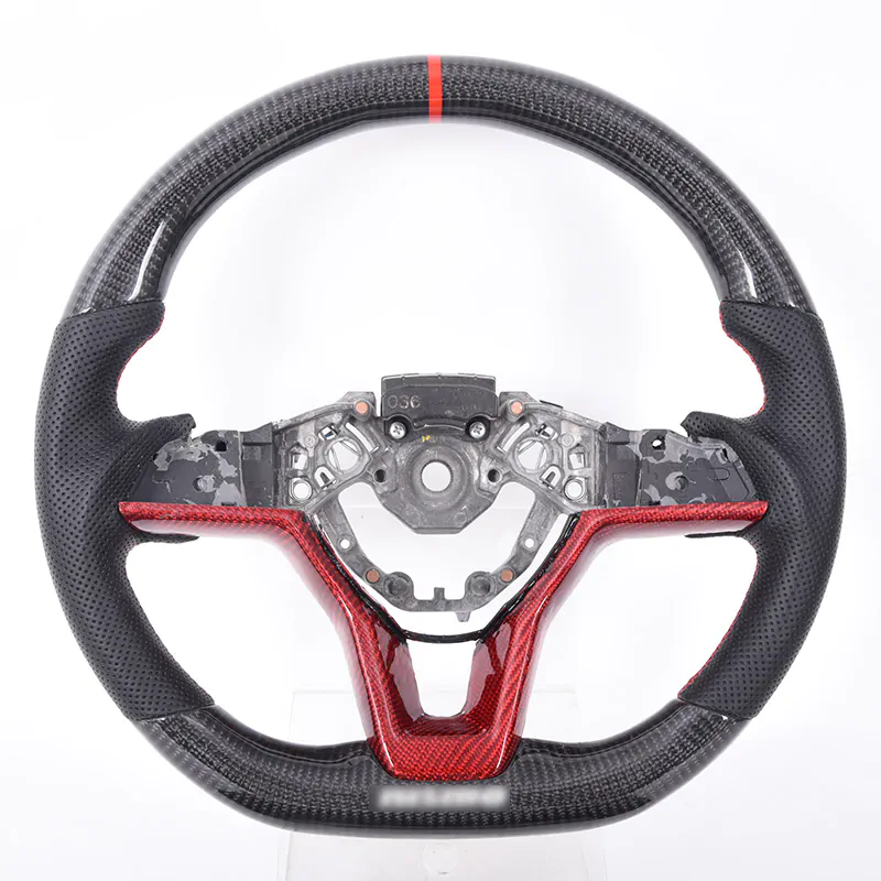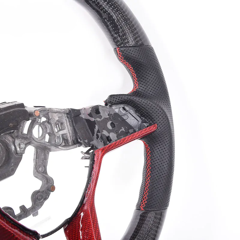 Red Carbon Fiber Steering Wheel with Perforated Leather for Nissan Sylphy