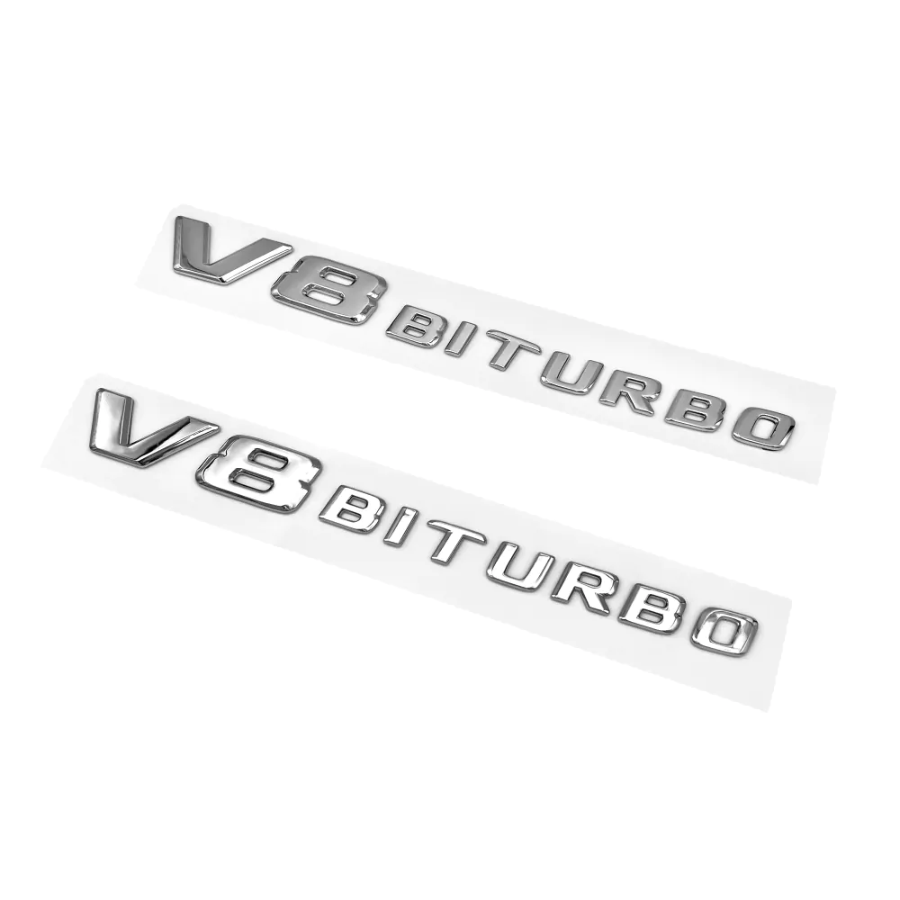 2x Premium Quality Chrome Finish Current Style 2017+ 3D “”V8 BiTurbo”” Badge Side Fender Emblem