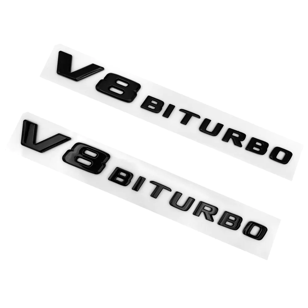 2x Premium Quality Gloss Black Finish New Style 2017+ 3D “”V8 BiTurbo”” Badge Side Fender Emblem